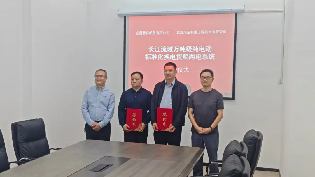 近日,中船集團(tuán)七一九所旗下武漢海王機電工程技術(shù)有限公司與宜昌鼎祥船務(wù)有限公司達(dá)成關(guān)鍵合作,成功簽訂4船(套)長江流域萬噸級電動標(biāo)準(zhǔn)化換電貨船兩電系統(tǒng)和智能系統(tǒng)供應(yīng)合同,標(biāo)志著雙方在綠色智能船舶裝備領(lǐng)域的合作正式落地。