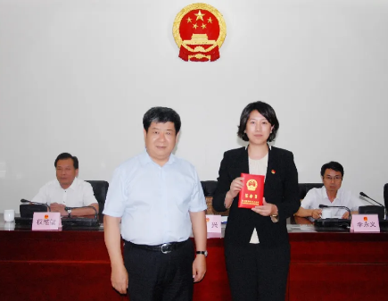 杜寒冰(右)接受任命